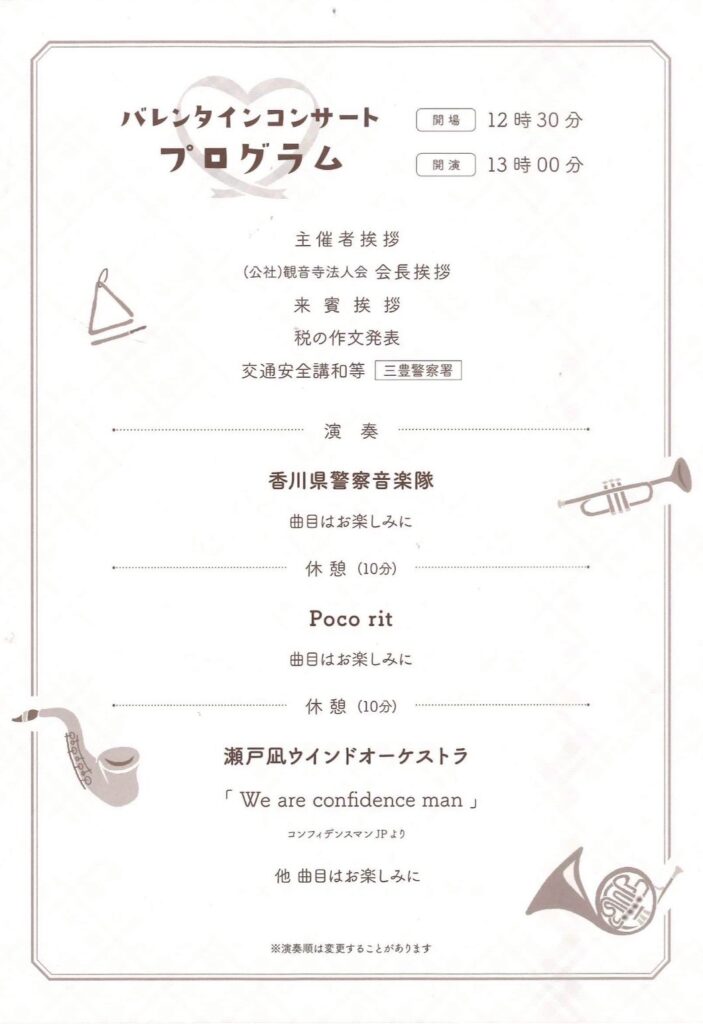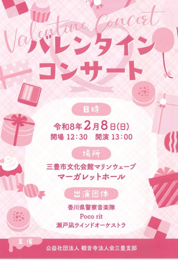 観音寺法人会様よりバレンタインコンサートに、今年もご招待いただきました。
